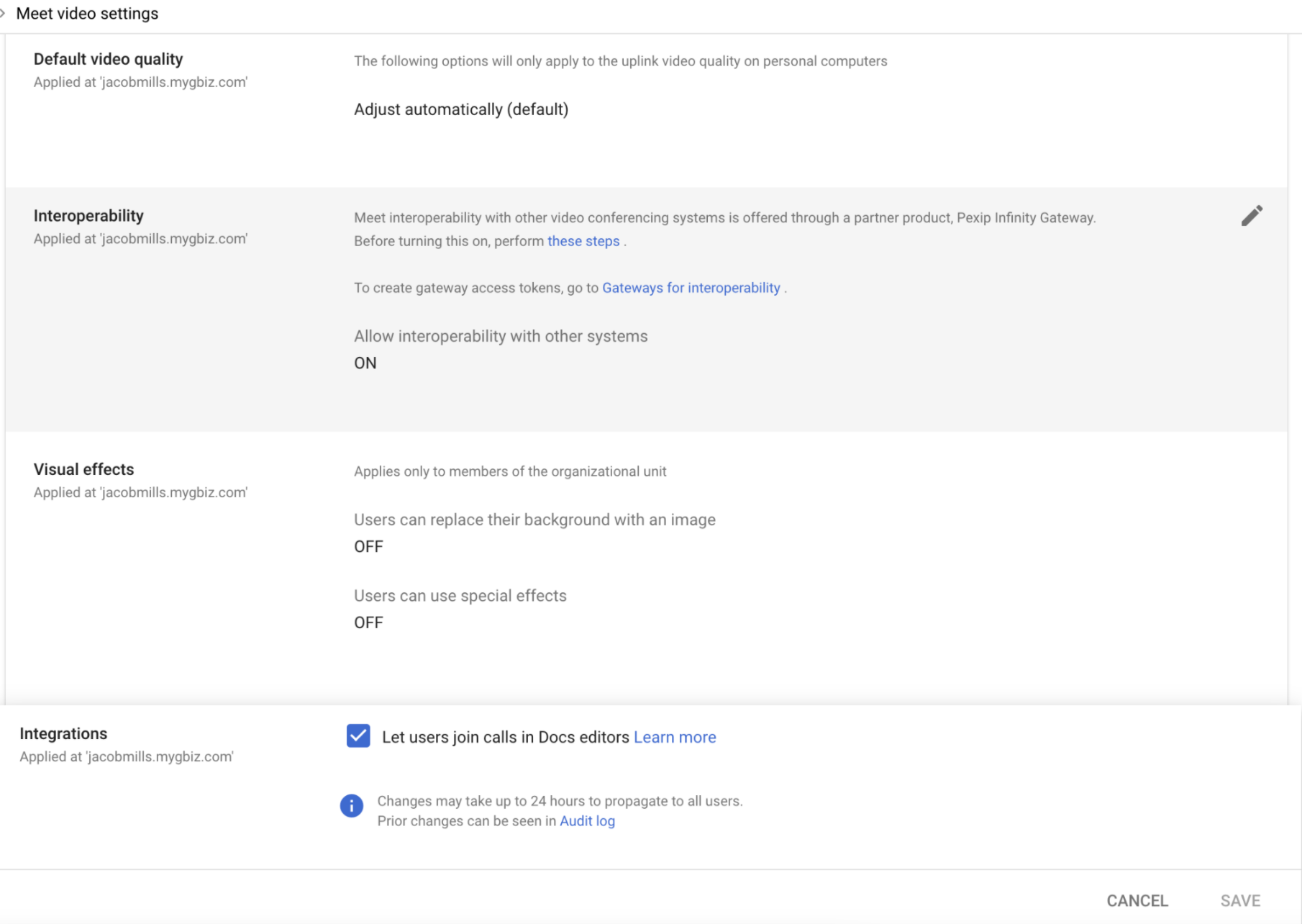 - Administradores: Esta función está ACTIVADA de forma predeterminada y se puede desactivar a nivel de la UO. Visita el Centro de ayuda para obtener más información sobre cómo permitir que sus usuarios presenten en Meet desde los editores.